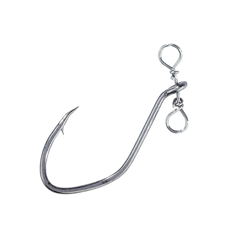 Keine komplizierten Knoten mehr: Schnur einfach in die beiden Ösen unten und oben knoten. Der Haken steht horizontal und kann sich frei um 360° drehen. Mit extra weitem Hakenbogen!