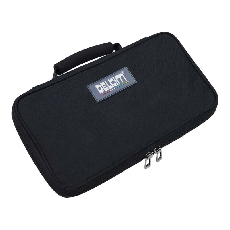 Der Koffer ist sehr stoßfest und mit einem stylischen Delkim Logo versehen.