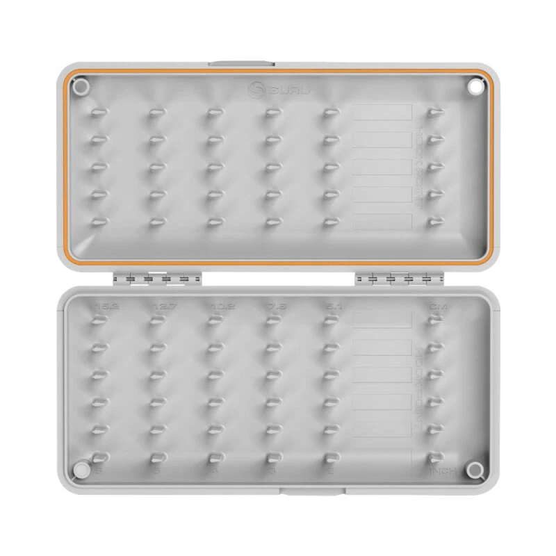 Der Stealth Rig Case ist ein Update des originalen Guru Rig Case, mit dem der Angler vorgebundene Vorfächer zwischen zwei und sechs Zoll Länge organisieren und aufbewahren kann. Mit magnetischem Verriegelungssystem und wasserfester Dichtung, die dafür sorgt, dass die Vorfächer in einem optimalen Zustand gehalten werden.