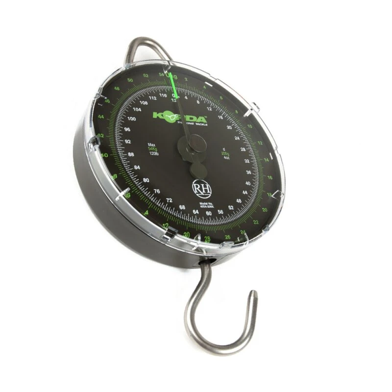 Das Gehäuse der Korda Waage ist aus widerstandfähigem Polycarbonat, das mit dem beliebten Korda Logo versehende Zifferblatt sehr gut ablesbar.