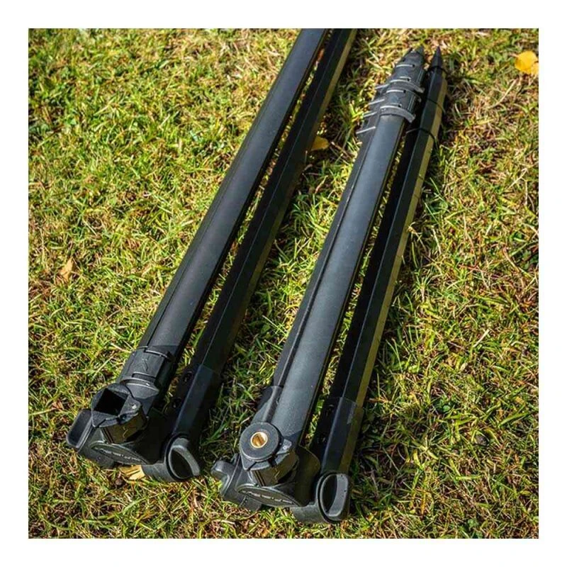 Eine kompaktere Version unseres legendären River-Tripod. Dieses superstabile Teil besteht aus Anti-Twist-Profilen, die einen absolut stabilen Stand für Ihre Ruten bieten. Die Mittelstange kann während des Gebrauchs ausgefahren werden, lässt sich aber über doppelt ausziehbare Cam-Locks ordentlich verstauen, wodurch es beim Transport viel kompakter wird. Die Buzzer Bars sind unglaublich stark und verfügen über unser geniales Speed ??Fit-System. Sie müssen sie also nicht ein- und ausschrauben, um sie anzubringen oder zu entfernen. Die Vorderbeine sind in nahezu jedem Winkel verstellbar und können über Cam-Lock Verschlüße in der Höhe verstellt werden.