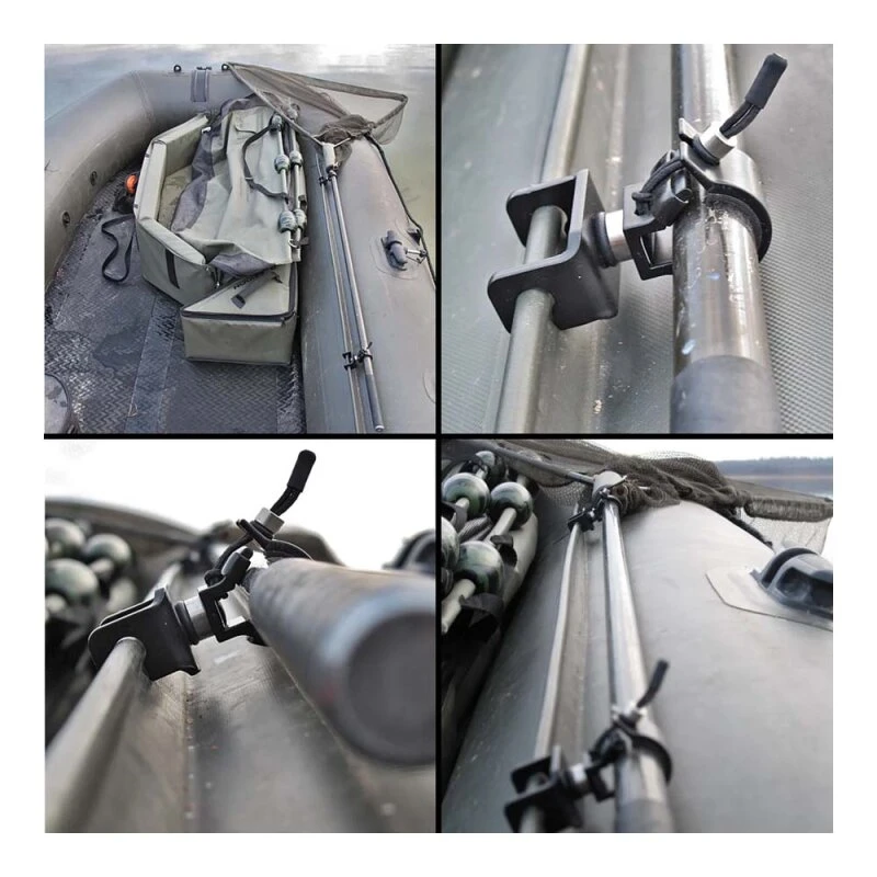 Das Thread Mounting Kit ist ein Befestigungsadapter für Schlauchboote mit dem üblichen 3/8“ Gewinde um alle Arten von Rutenauflagen oder Bißanzeigern aufzunehmen. Sein Einsatzbereich ist daher vielfältig! Konzipiert wurde er um in Verbindung mit den Rod Safe den Kescher auf dem Schlauchboot optimal und sicher zu befestigen.