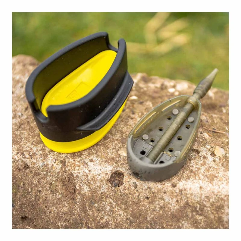 Die Banjo XR-Moulds stellen sicher, dass Sie jedes Mal die richtige Menge an Köder verwenden. Dafür einfach Pellets oder Futter oben in die Form geben, den Banjo XR Korb auflegen und dann fest mit Hilfe der seitlichen Flügel pressen. Zum Lösen den Knopf an der Unterseite drücken. Das Futter ist jetzt perfekt auf den Korb gedrückt und bereit zum Auswerfen. Erhältlich in den Größen Small, Medium und Large, passend zu den Größen der Banjo XR Feeder.